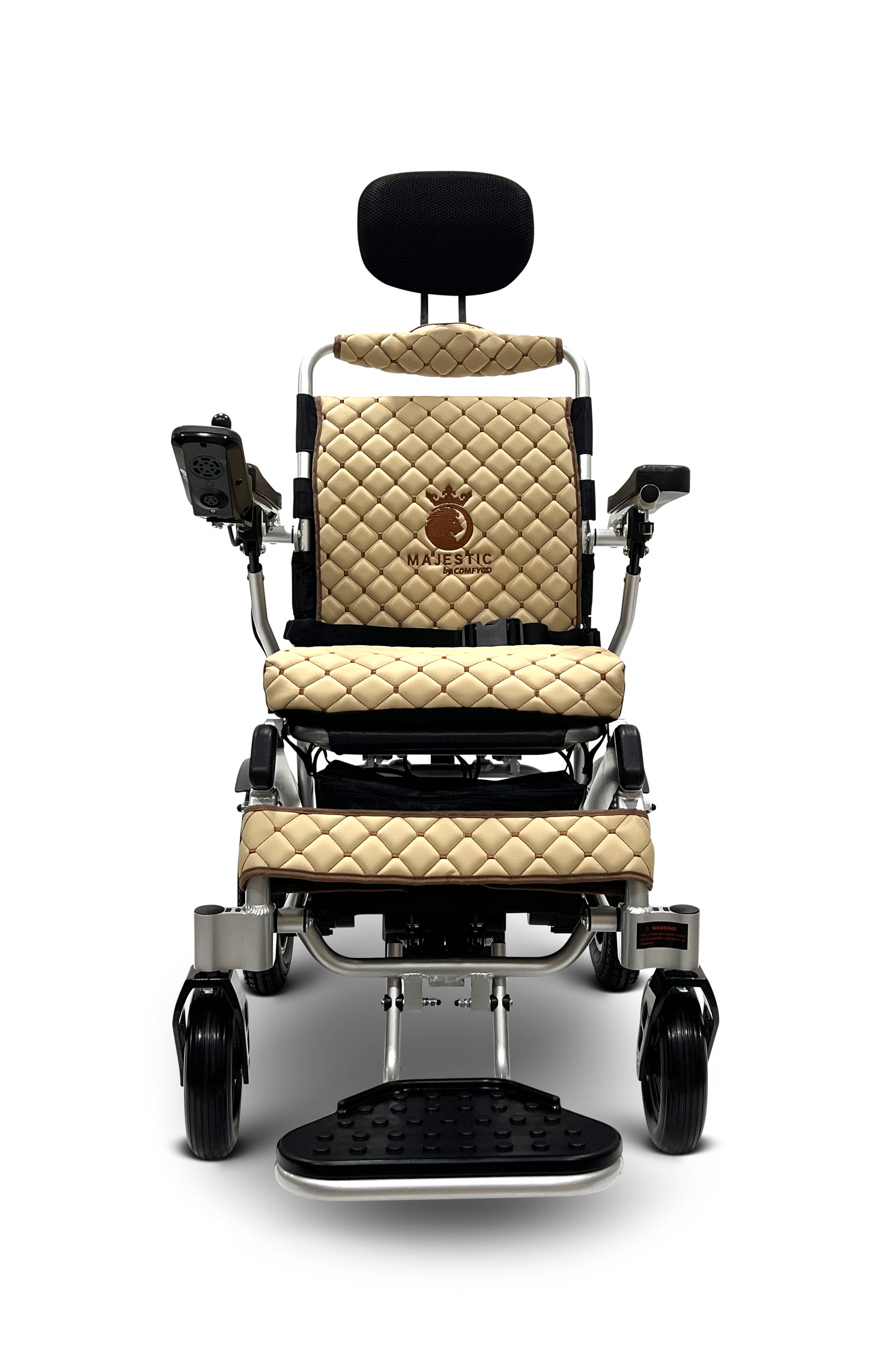 360° Joystick: At a mere 52 lbs without the battery, the MAJESTIC IQ-9000 stands as one of the lightest electric wheelchairs available, offering unparalleled ease of use and portability. Our dedication to quality is evident in the comprehensive warranties we provide: a 3-year warranty on the frame and motor, and a 1-year warranty on the electronics and battery. The IQ-9000 wheelchair also features a 360-degree universal intelligent digital joystick with an LCD display, ensuring precise and effortless control over your mobility.